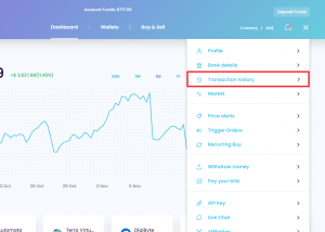 2. Hover over transactions, then click on “transaction history”